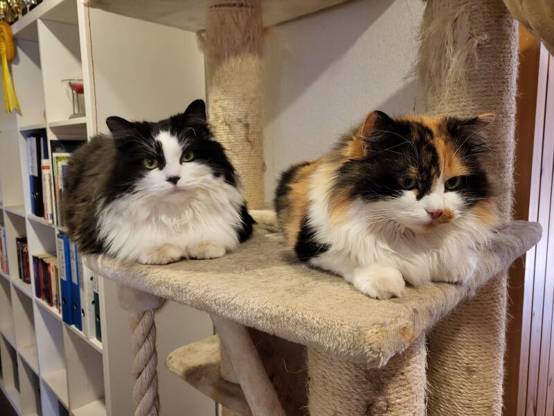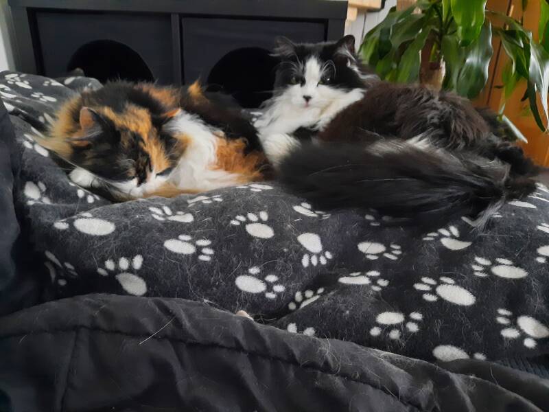 Aja et Nyame sont venues agrandir la famille en 2018, suite au décès de Youki. Ma soeur a eu une portée de 5 chatons et j'ai gardé les 2 filles, les inséparables.